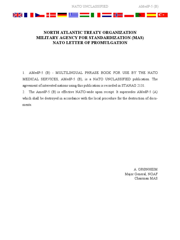 Amedp5 Nato Medical Phrase Book Lieutenant Officer Armed Forces